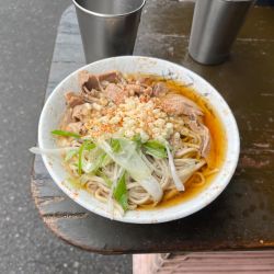 | 備考 | 椎名町路麺 ほぼ休みなく26年間営業(2022年8月現在) 看板メニュー「肉そば」の肉は ツユで炊いた豚コマがどっさり。 隠し味に玉ねぎのエキスを加えた自然な甘みのツユは 朝方はあっさり、夜になれば濃厚と、 刻々と味が変化する。 ※以上は「おとなの週末」2022年9月号より。 |
